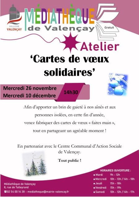 26 novembre et 10 décembre : atelier "Cartes de voeux solidaires" à Valençay
