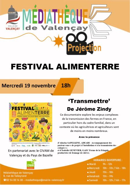 + 19 novembre : Festival Alimenterre Projection "Bienveillance paysanne" à Valençay Voir l'invitation